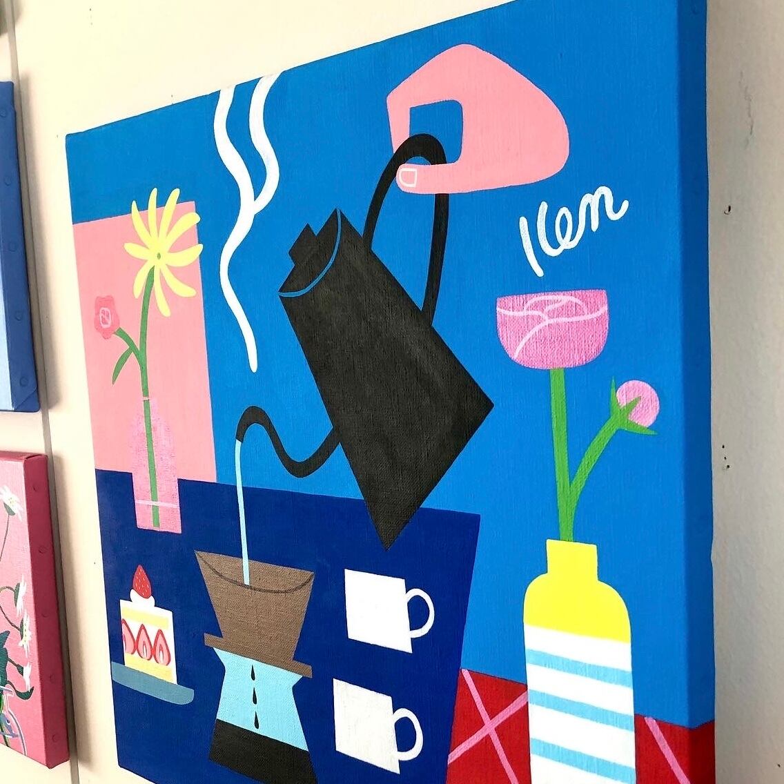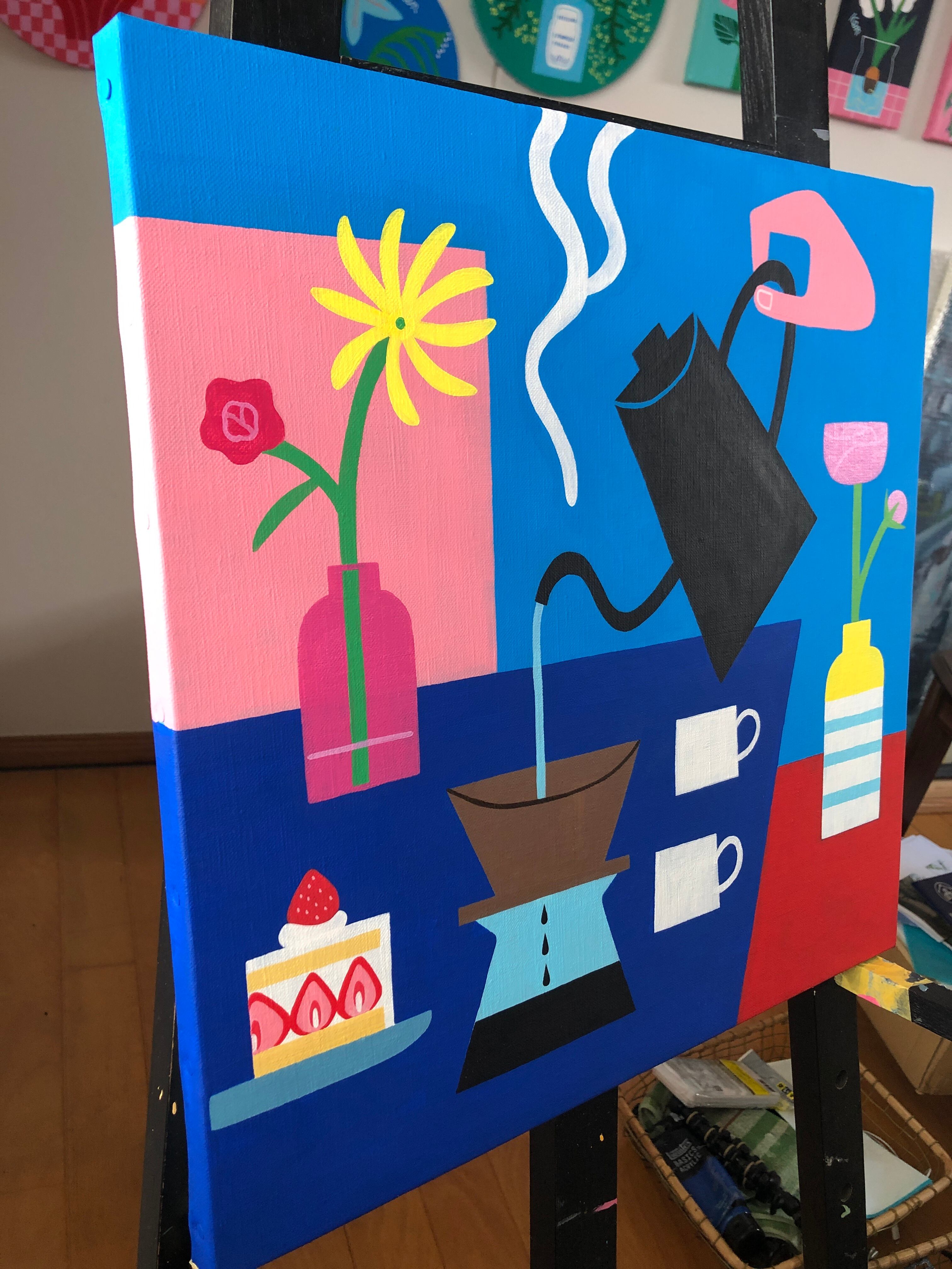 色鮮やかでポップな作品です。リビングや玄関などに合います。飾るだけで明るく華やかな雰囲気になること間違いなしです。