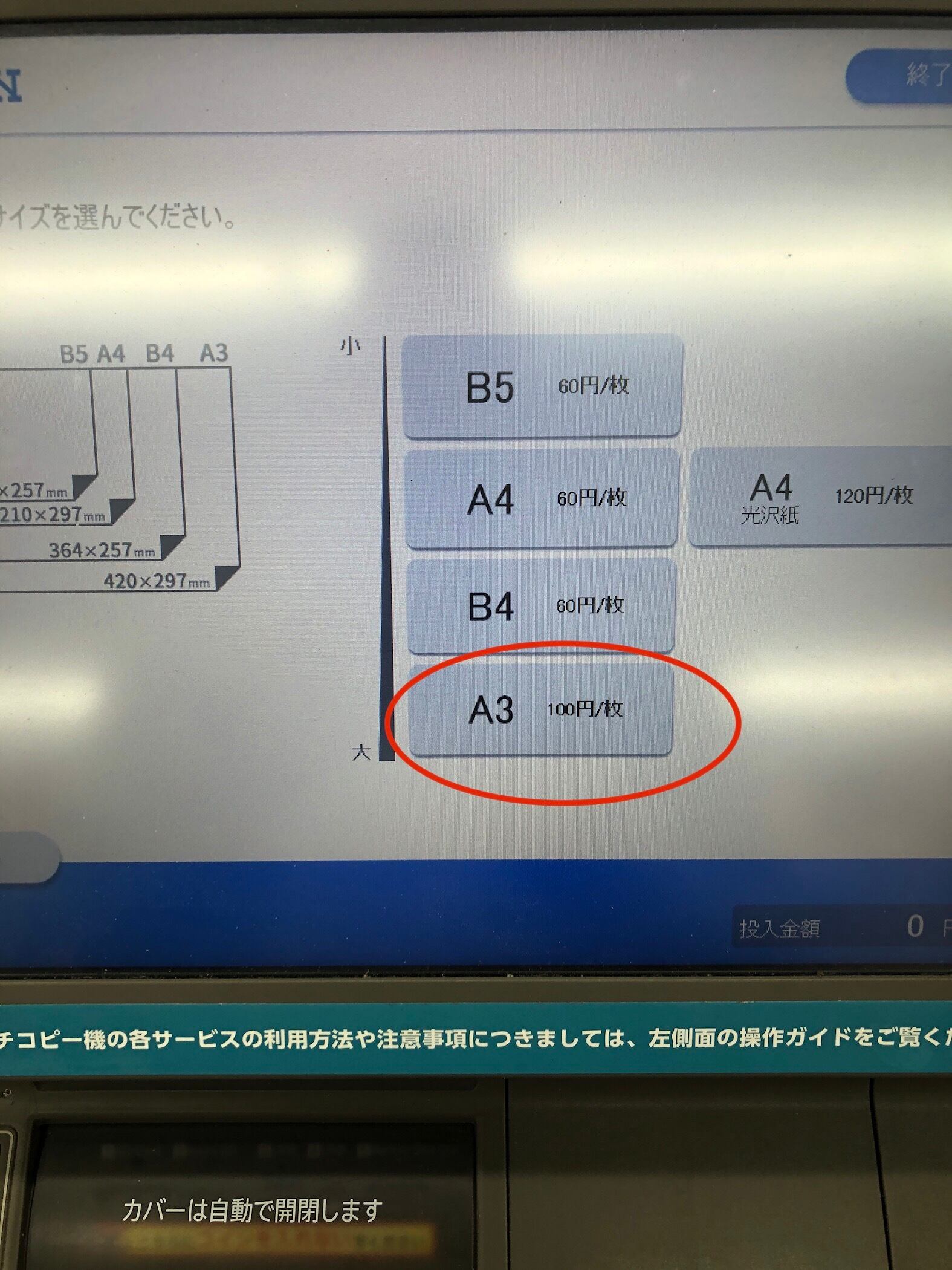 (カラー、A3、100円)